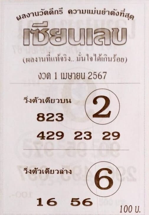 หวยเซียนเลข 1-4-67 แบ่งปันเลขเด็ด งวดต่องวดหวยรัฐบาล ที่ไม่เคยพลาดในแต่ละงวด ค้นหามาจากสถิติ โอกาสที่จะให้คุณได้ถูกหวย ต้องติดตามเว็บไซต์ lekded789.com คัดใหม่ๆ คัดหวยที่แม่นยำ เลือกเลขวิ่ง พร้อมรวยกันได้เลยค่ะ