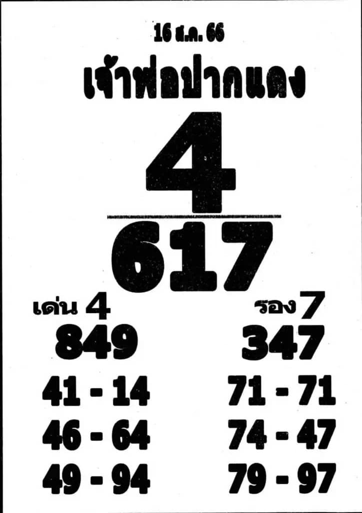 เลขเจ้าพ่อปากแดงงวดนี้ 16-8-66