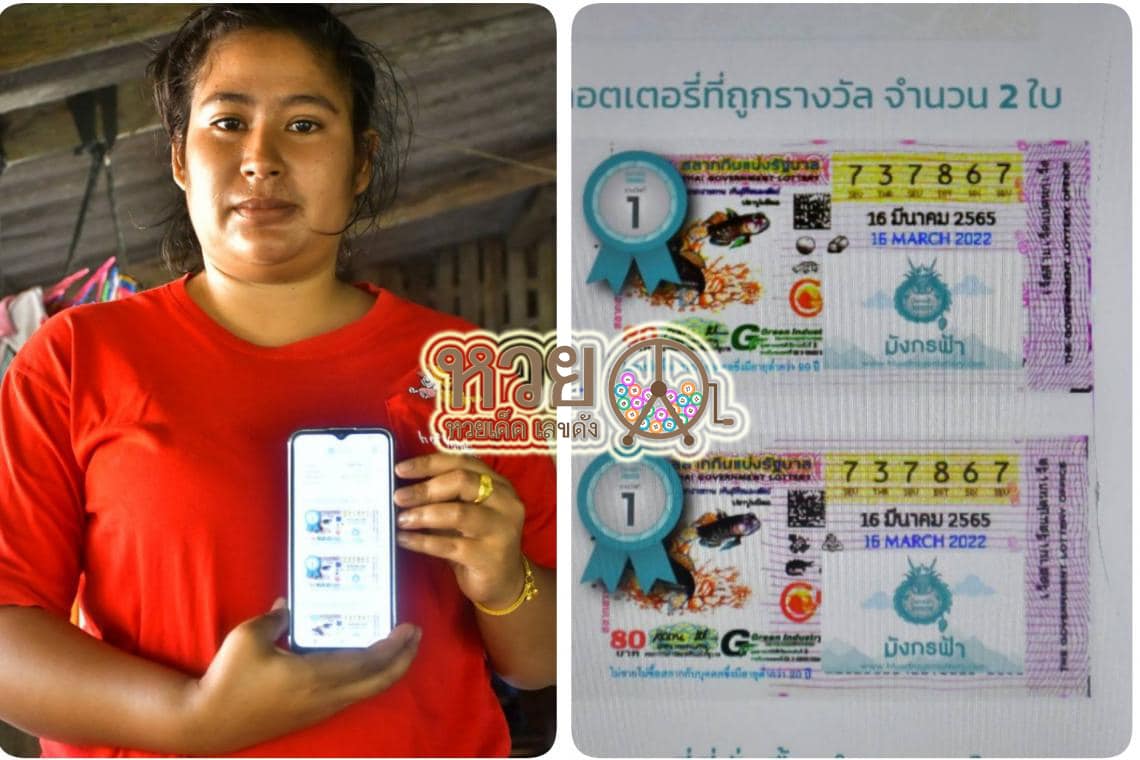 จากการสอบถาม น.ส.จันทิมา เปิดเผยว่า ตนซื้อลอตเตอรี่ เลขเด็ด จากเพจชื่อดัง “มังกรฟ้า” โดยซื้อมาตลอด งวดละ 2 ใบ ส่วนงวดนี้ตนซื้อเลขท้าย 67 เพราะเป็นเลขที่ชอบ พอหวยออกเพจดังกล่าว ก็โทรมาแจ้งว่า ตนถูกรางวัลที่ 1 ยอมรับรู้สึกดีใจ และ ตกใจมาก 5555555