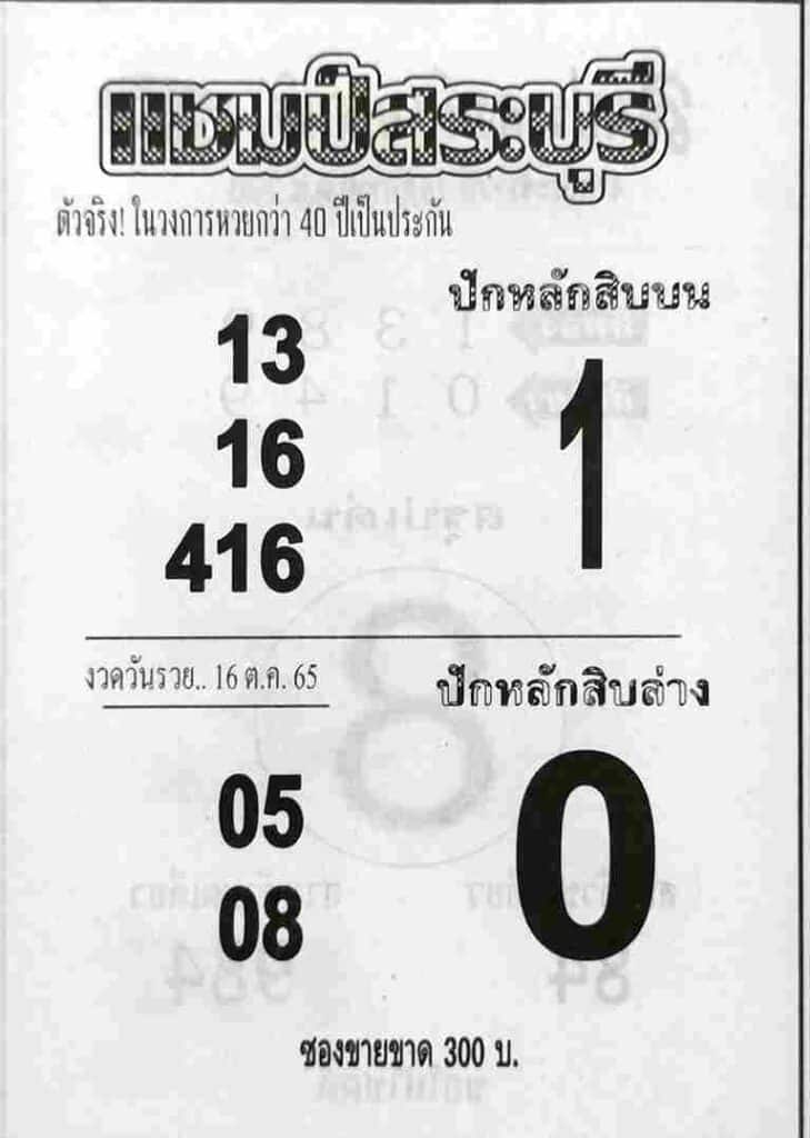 เลขเด็ด หวยแชมป์สระบุรี16/10/65 ทีเด็ดหวย เข้าทุกงวด สำหรับชุดเลขเด็ด วันนี้ ขอให้ทุกท่านโชคดี ถูกหวย รับทรัพย์ก้อนโต ที่คอหวยห้ามพลาด !!