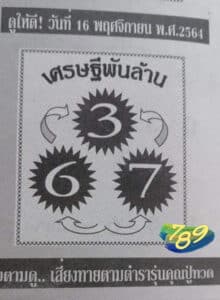 เลขเด็ด เศรษฐีพันล้าน 1/12/2564
