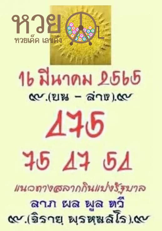 เลขเด็ด แนวทางสลาก แนวทางเลขเด็ด เลขแม่นๆ จากสำนักดัง ประจำงวด 16/03/2565 มาแล้วค่ะ