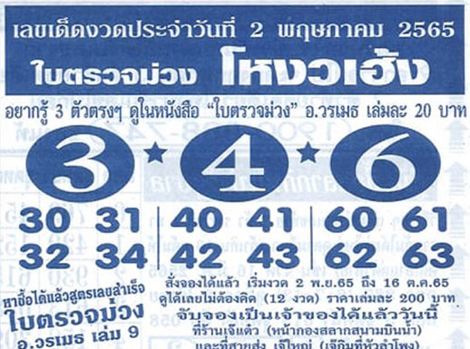 เลขเด็ดงวดนี้ หวยซองโหงวเฮ้ง ประจำงวด 02/05/2565